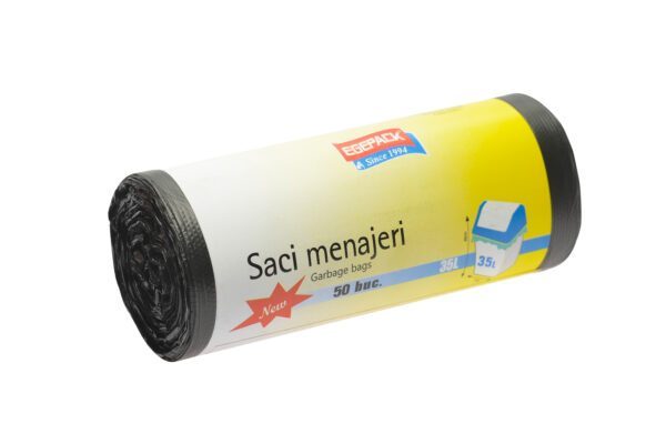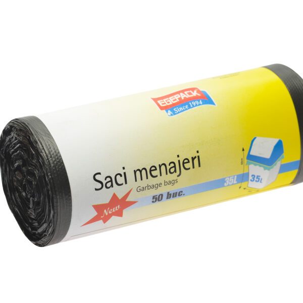Saci menajeri Egepack negri, 35L HDPE, 50 buc/rola, 50 role/bax